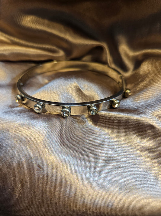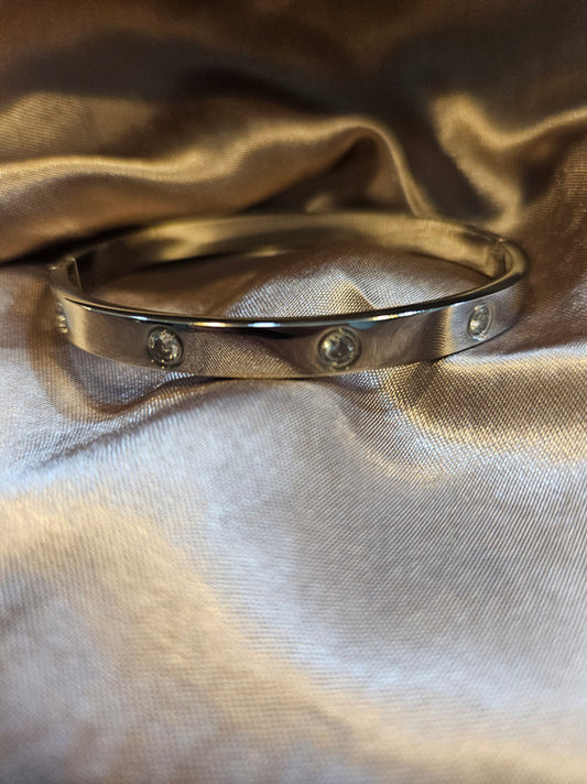 Stainless Steel Zircon Lifted Flower Cuff Bangle