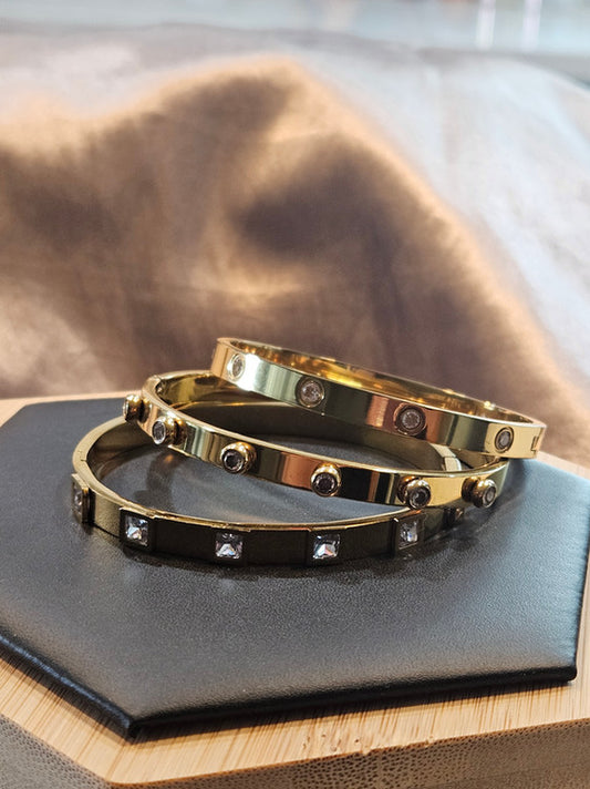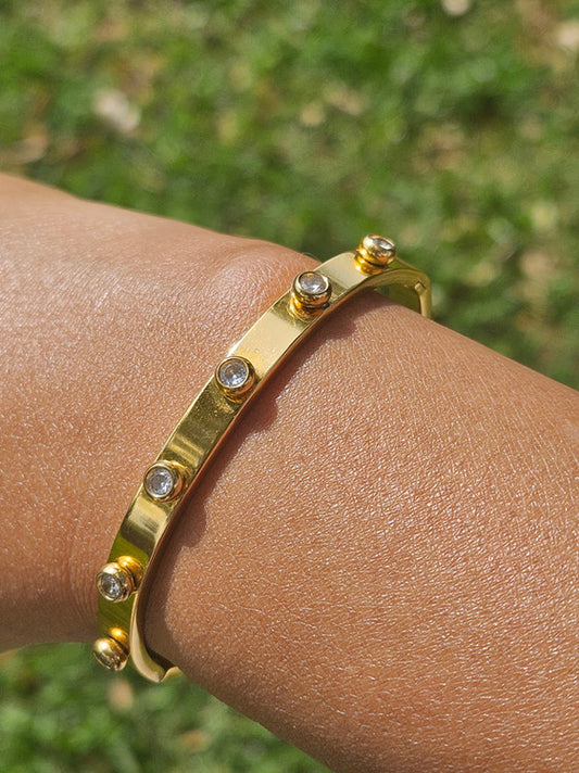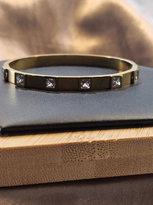 18k Gold Plated Oval Stainless Steel Square Zircon Bangle